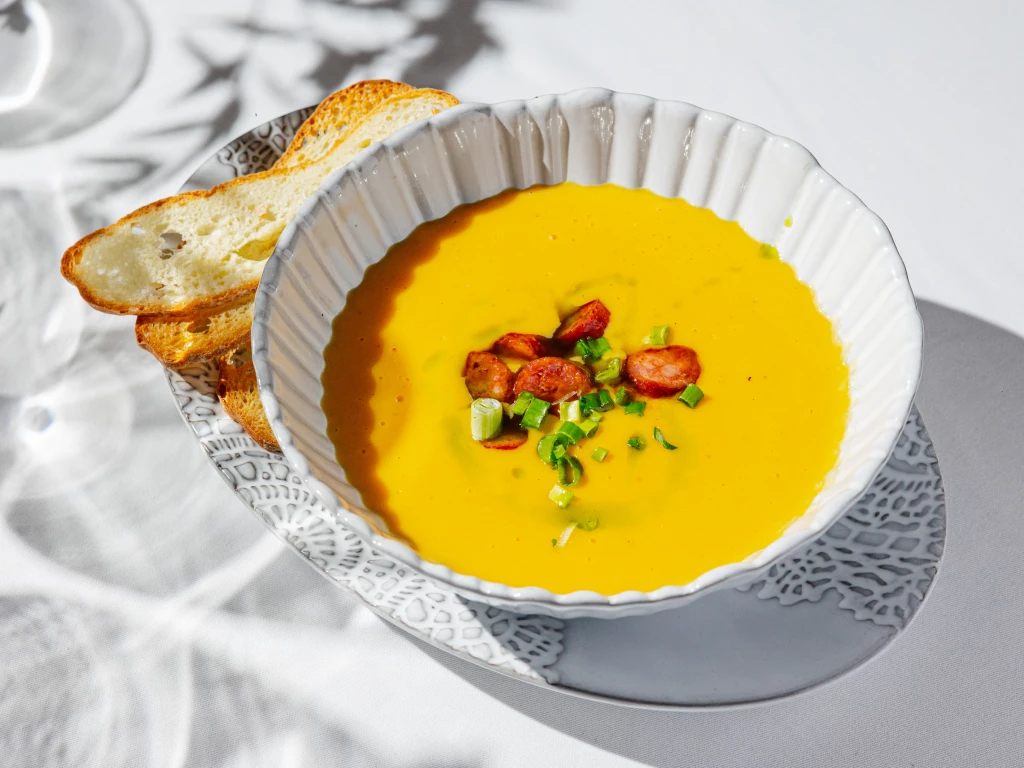 Сырный суп с охотничьими колбасками