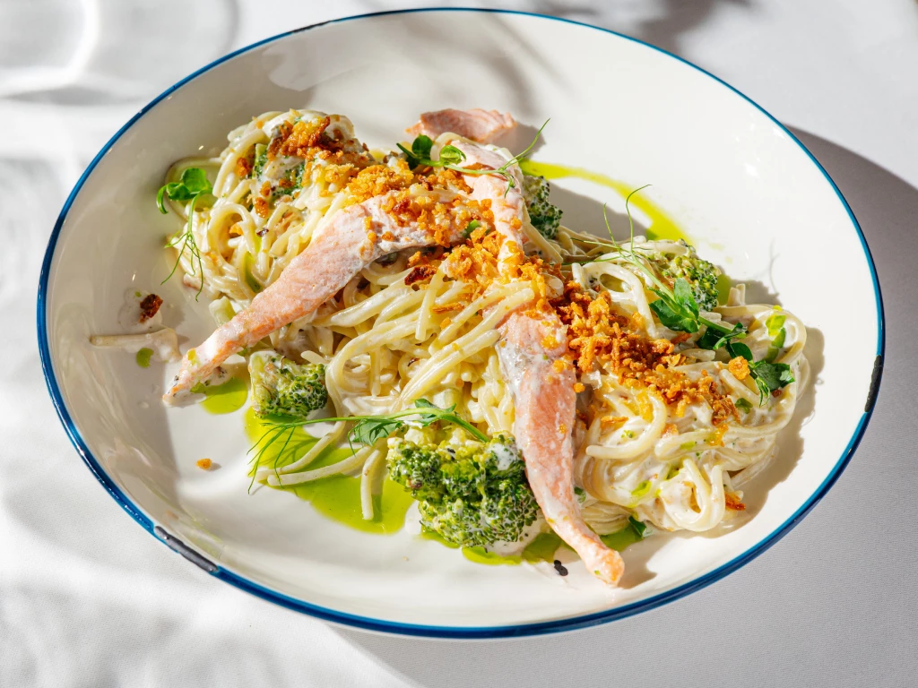 Паста с лососем и брокколи